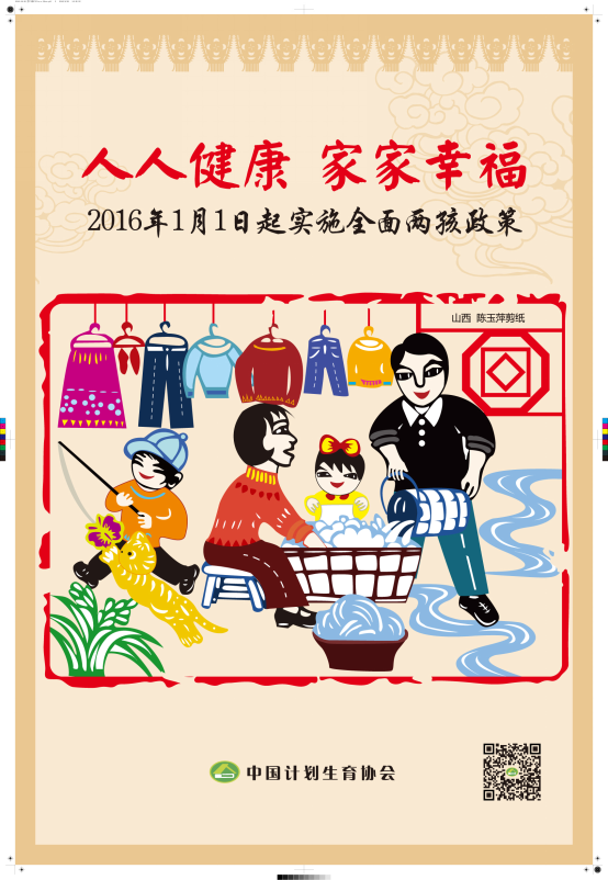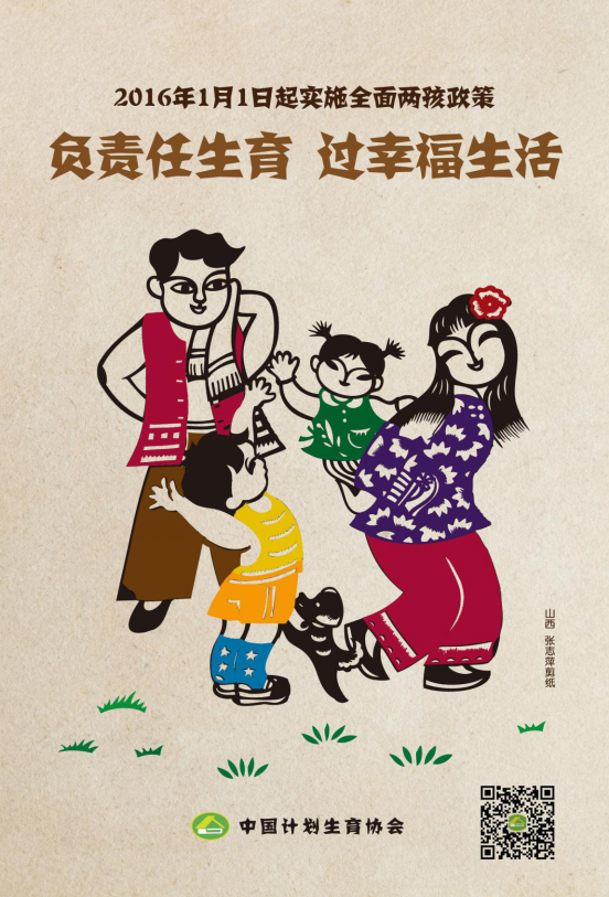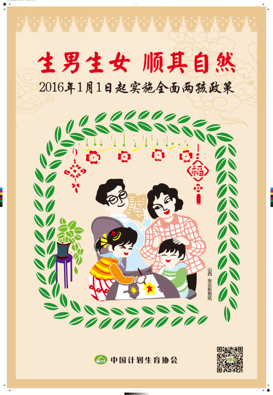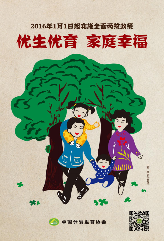 全面两孩政策自2016年1月1日起施行,这是对人口和计划生育政策的一次重大调整,具有里程碑意义,为新时期人口和计划生育改革与发展指明了方向。为认真宣传贯彻中央有关精神,积极发挥群团组织作用,开展好面向群众的宣传教育,中国计生协设计制作了四幅宣传海报。新海报用剪纸的形式进行设计,画面温馨和谐,建议各盟市在进行全面两孩政策宣传时,及时在嘎查村居和社区广泛张贴,扩大宣传效果。4幅海报可以单用也可以任意组合使用,可以直接印刷,也可以增加落款单位(但不要删除中国计生协的落款)印刷。高清版宣传海报可从中国计生协网站《下载专区》中下载电子版、按需加印。