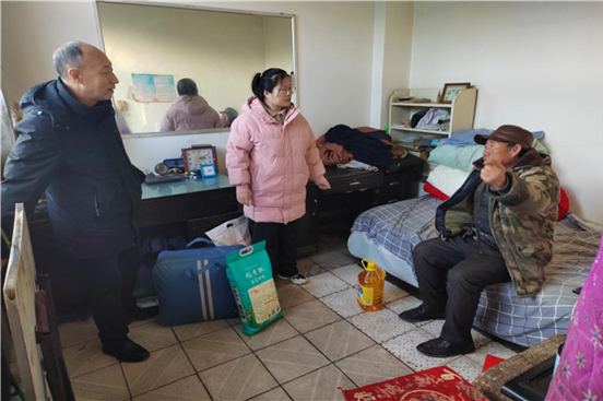 慰问组一行逐户上门走访,每到一户,都与老人们亲切交谈,细致询问他们的身体状况、生活情况及实际困难,细心了解老人们的居住环境与照护情况,讲解日常生活注意事项,提醒注意居家安全。同时送上精心准备的大米、面粉、食用油、御寒棉被等生活必需品,以及特别印制的健康知识宣传台历。本次活动不仅给特殊家庭送去了物质上的帮助,更传递了党和政府的温暖。
