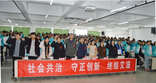 活动现场,志愿者代表宣读了防艾《倡议书》,号召大家积极投身到抗击艾滋病的行动中来。志愿者们进行了铿锵有力的集体宣誓。举办主题为“青年学生艾滋病防治知识”的健康知识讲座。通过深入浅出地讲解知识,并结合互动问答环节,使广大师生对防“艾”知识有了全新的认识和理解。活动现场,300余名学生积极参与了有奖竞答。活动结束后,参与者纷纷打卡签名,以实际行动践行“社会共治,守正创新,终结艾滋”的理念。